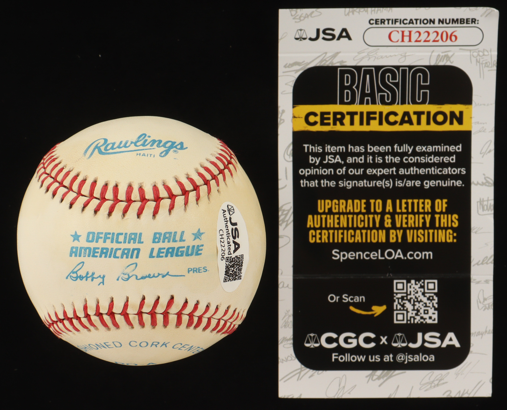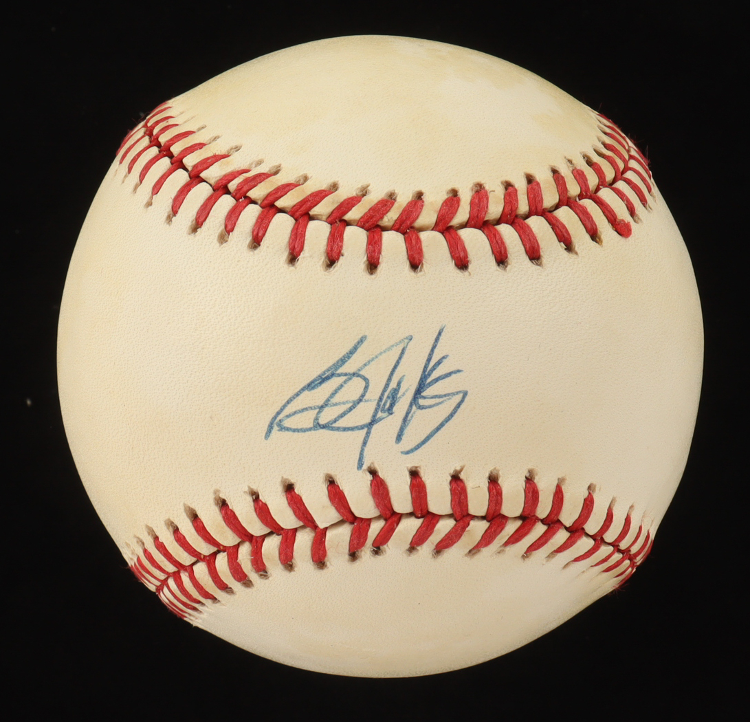 Rawlings Official American League Baseball. Hand-signed by Bo Jackson (Kansas City Royals). Please note, the baseball is naturally toning and stained.
