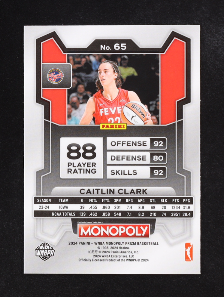 Caitlin Clark 2024 Panini Prizm Monopoly WNBA #65 RC