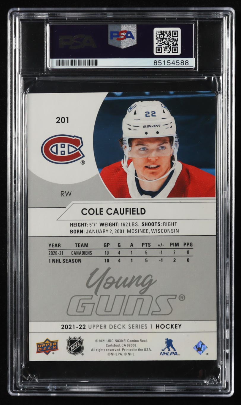 Cole Caufield Signed 2021-22 Upper Deck #201 YG Jumbo RC (PSA | Auto 10)
