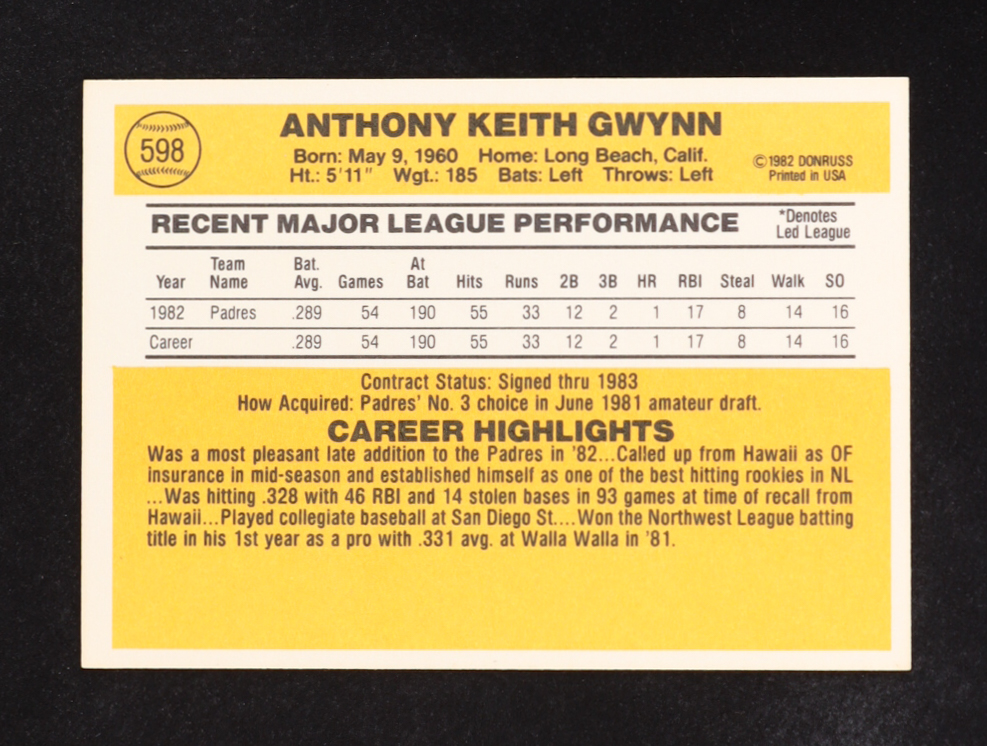 Tony Gwynn 1983 Donruss #598 RC