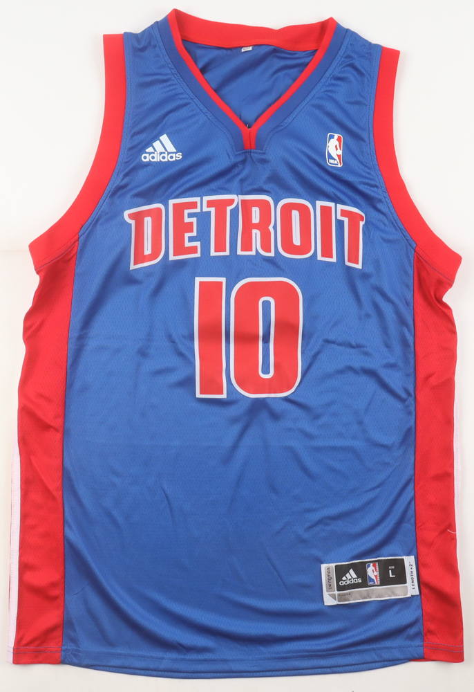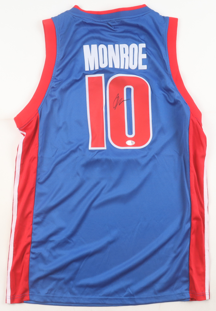 Adidas authentic jersey with everything pressed on, size L. Hand-signed by Greg Monroe (Detroit Pistons).