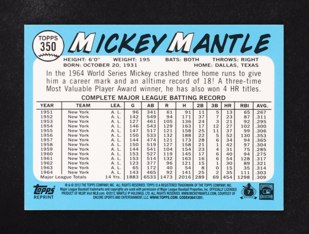 Mickey Mantle 2012 Topps Factory Set Mantle Chrome Gold Refractors #350 65T