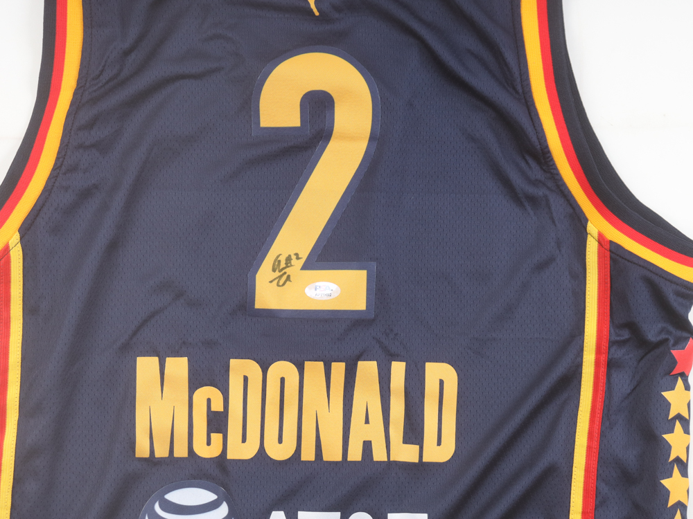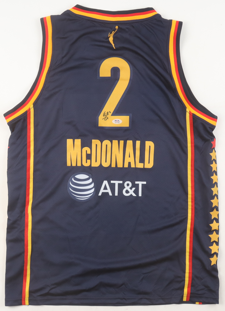 Nike authentic jersey with everything pressed on, size L. Hand-signed by Aari McDonald (Indiana Fever