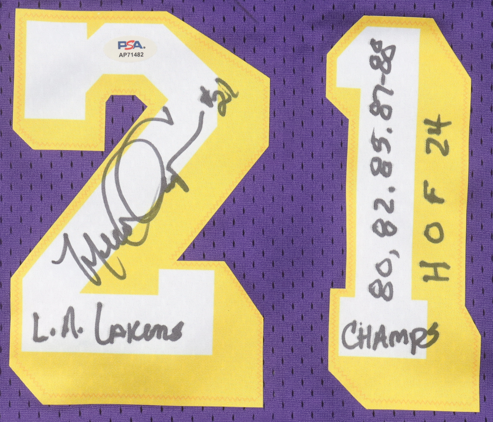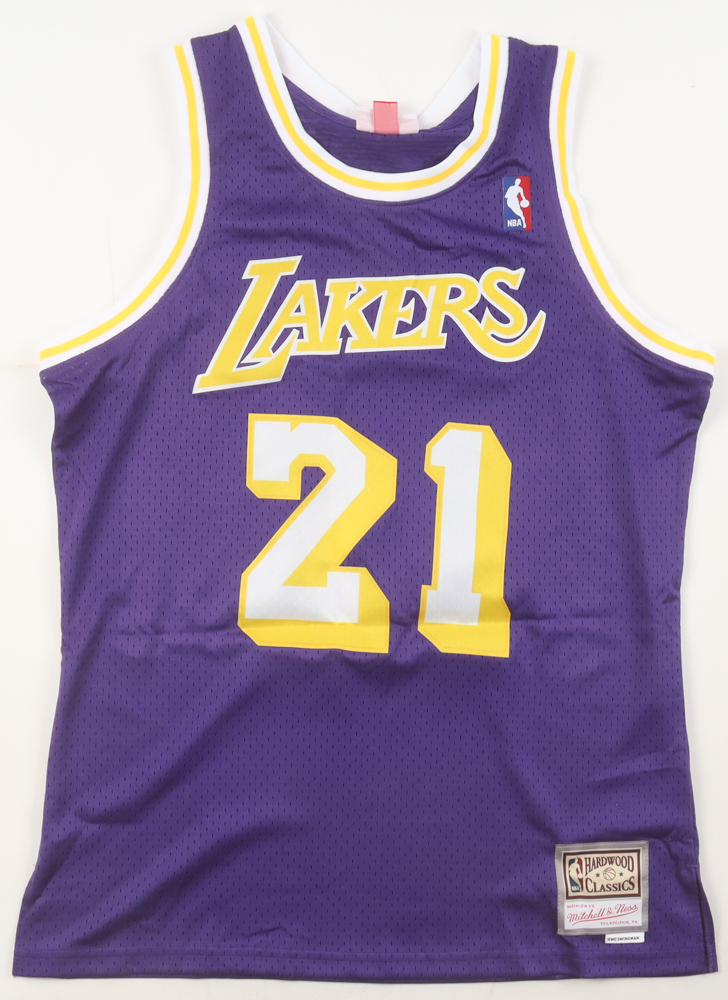 Mitchell & Ness Authentic jersey with everything pressed on, size L. Hand-signed and inscribed by Michael Cooper (HOF). Please note, there is a stray ink mark above the reverse number. See photos regarding the condition of the item.
