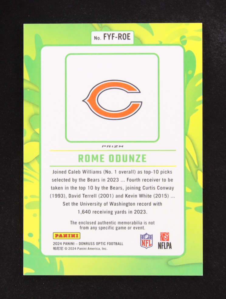 Rome Odunze 2024 Donruss Optic First Year Fresh Jerseys Blue Hyper #36 RC