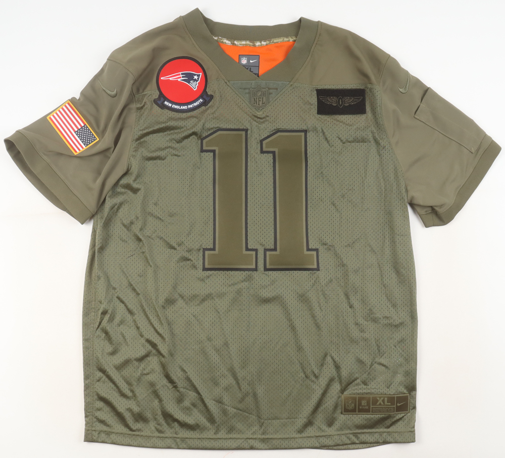 Nike jersey with everything sewn on, size XL. Hand-signed by Julian Edelman.