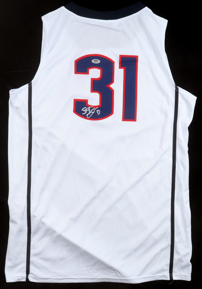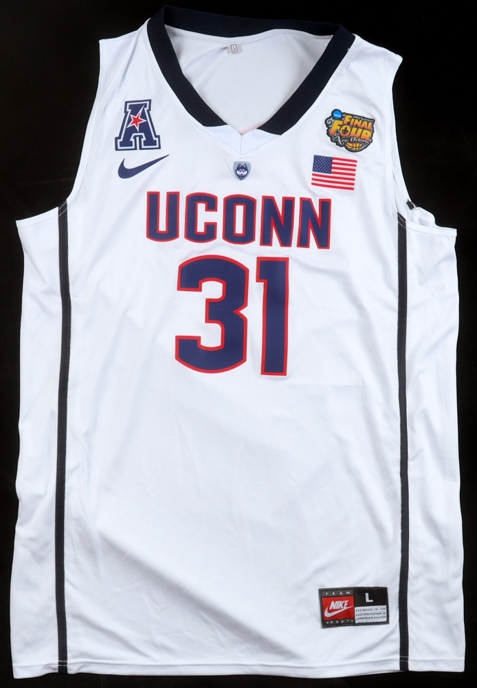 Nike authentic jersey with everything pressed on, size L. Hand-signed by Stefanie Dolson (UConn Huskies).