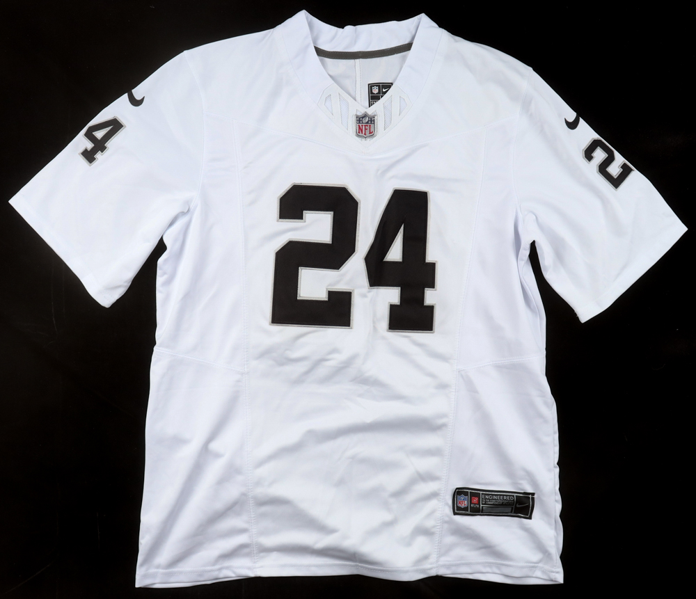 Nike jersey. Everything sewn on, size L. Hand-signed by Ice Cube (Las Vegas Raiders). Please note, there is an ink stain to the right of the reverse number. See photos regarding the condition of the item.