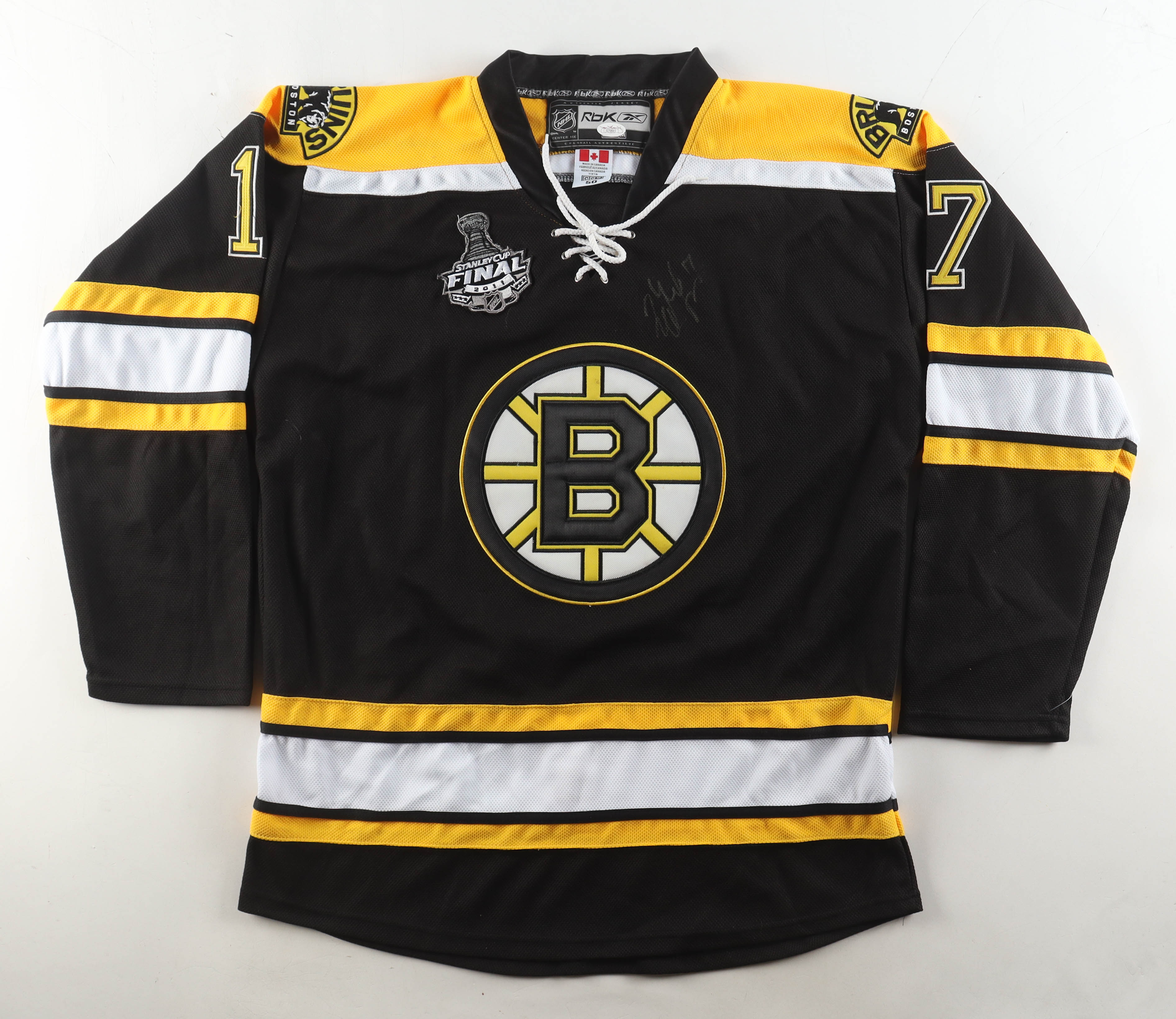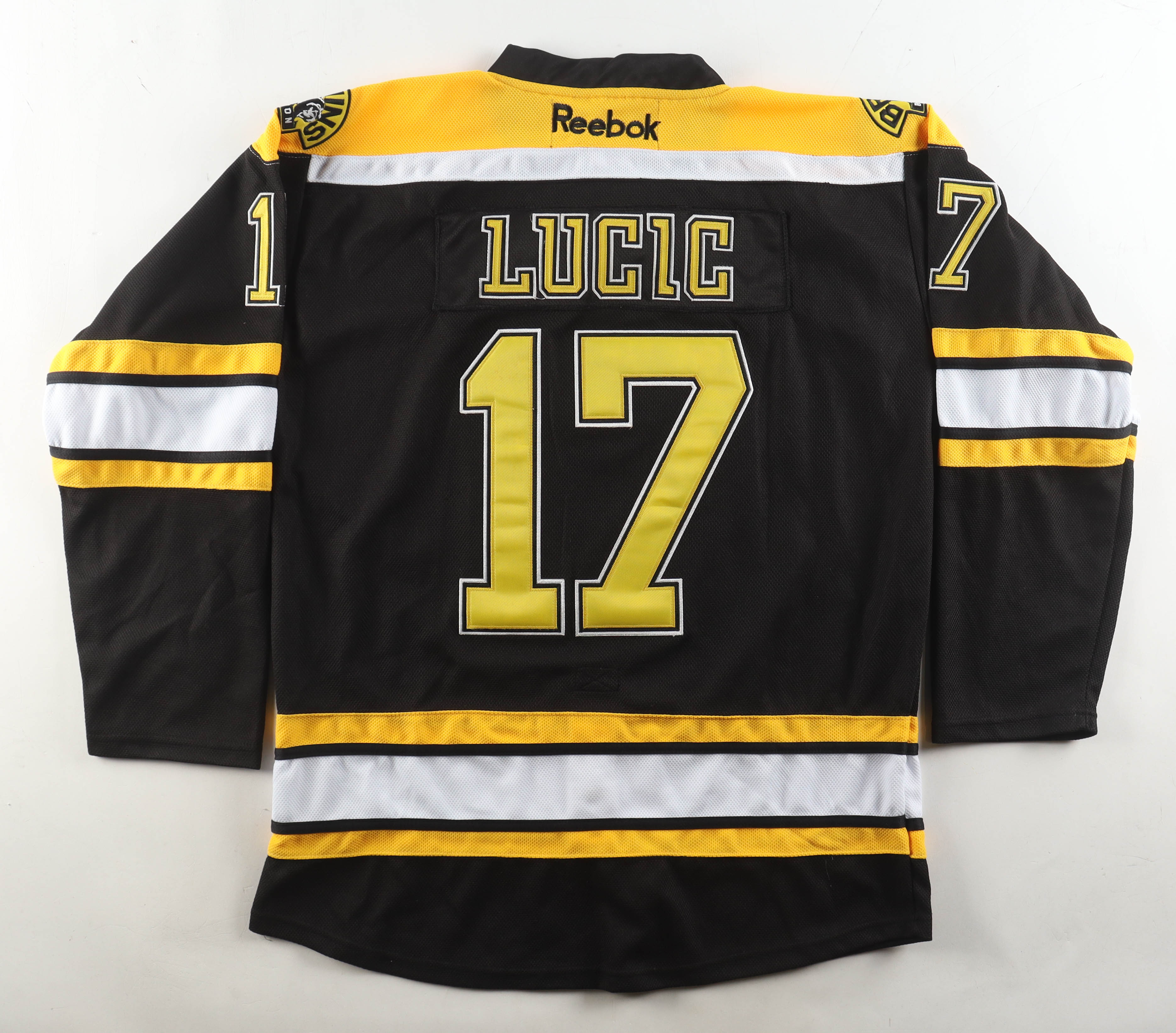 Reebok jersey. Everything is sewn on, size 50. Hand-signed by Milan Lucic (Boston Bruins).