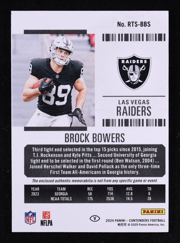 Brock Bowers 2024 Panini Contenders Rookie Ticket Swatches Variations #8 RC
