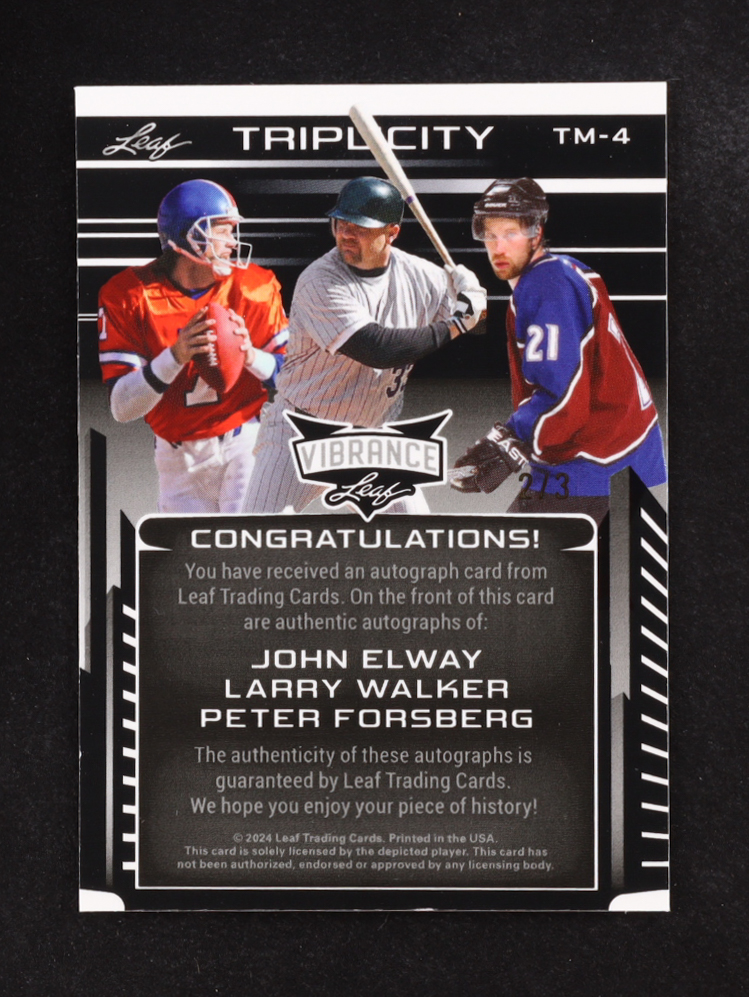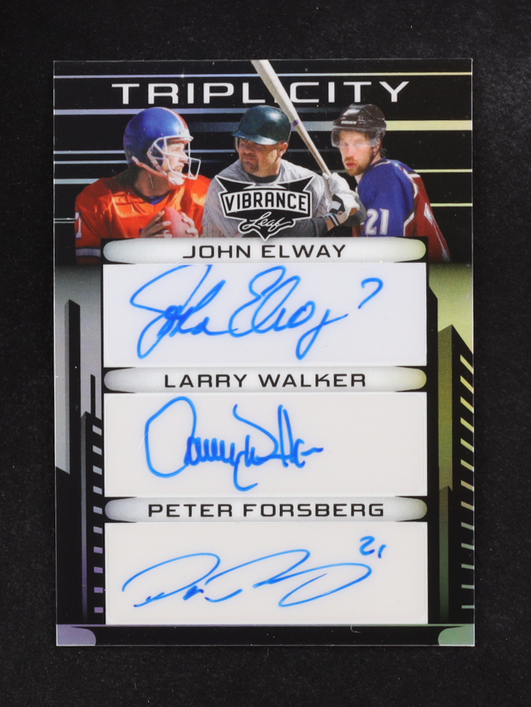 John Elway / Larry Walker / Peter Forsberg 2024 Leaf Vibrance TripliCity Autographs #TM4 #3/4