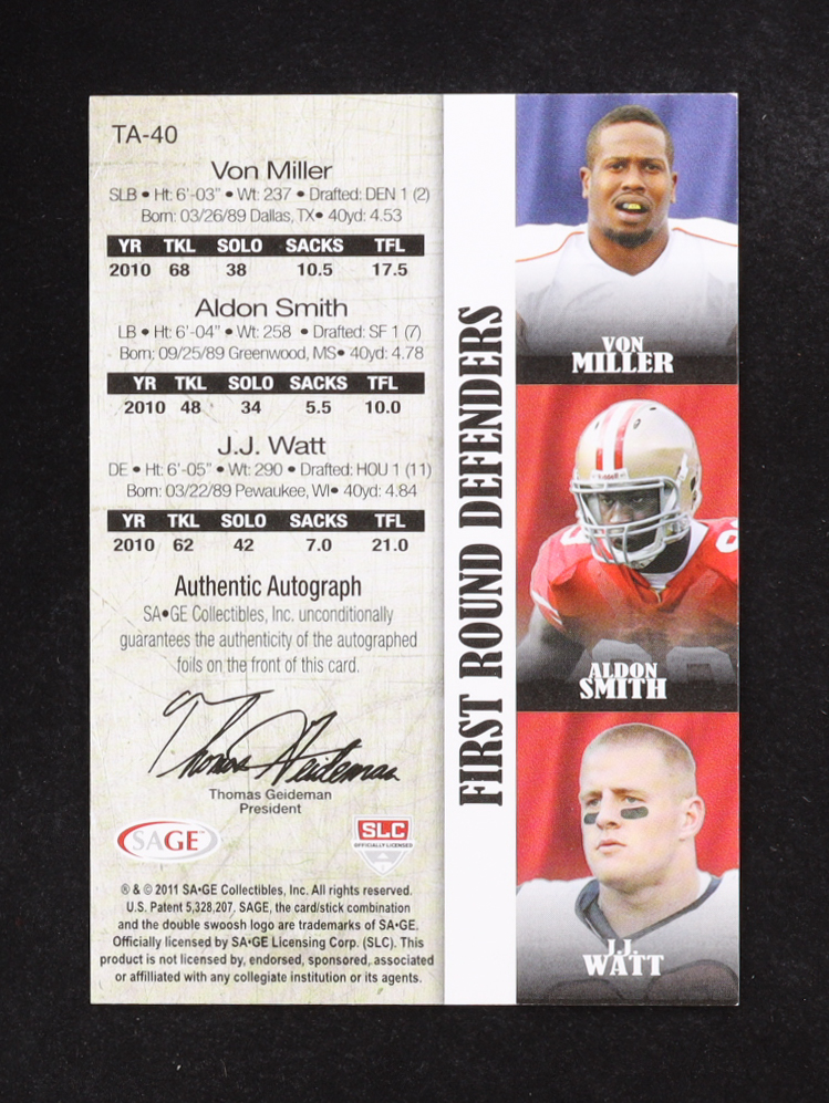 JJ Watt / Von Miller / Aldon Smith 2011 Safe First Round Defenders Autographs #TA40 #6/25 RC