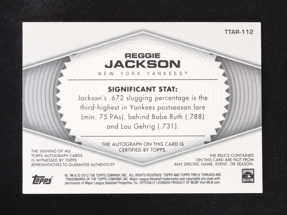 Reggie Jackson 2012 Topps Triple Threads Relic Autographs #TTAR112 #1/18