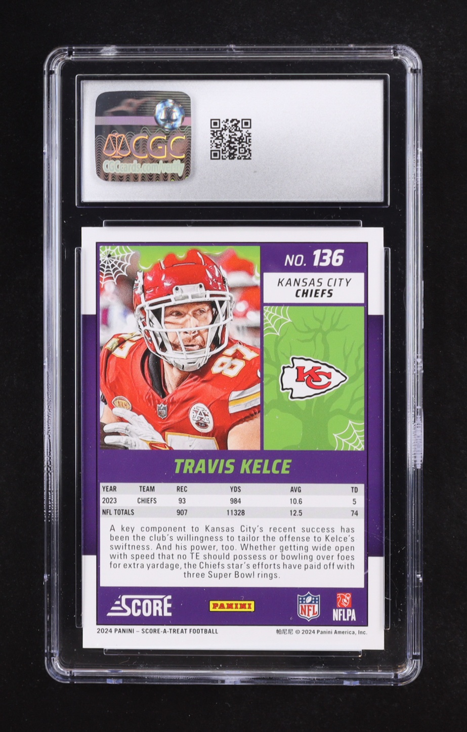 Travis Kelce 2024 Panini Score-A-Treat Orange Pumpkin #136 (CGC 10)