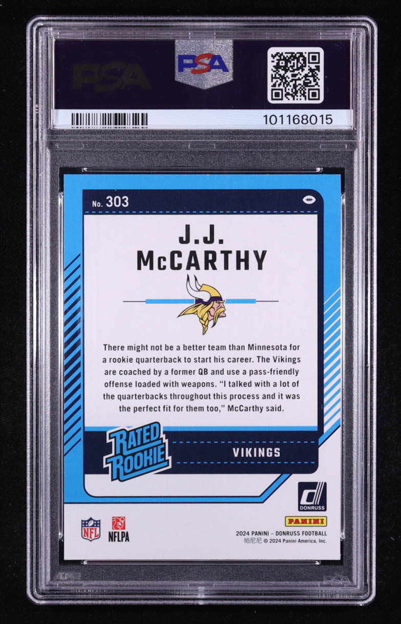 J.J. McCarthy 2024 Donruss #303 RR RC (PSA 9)