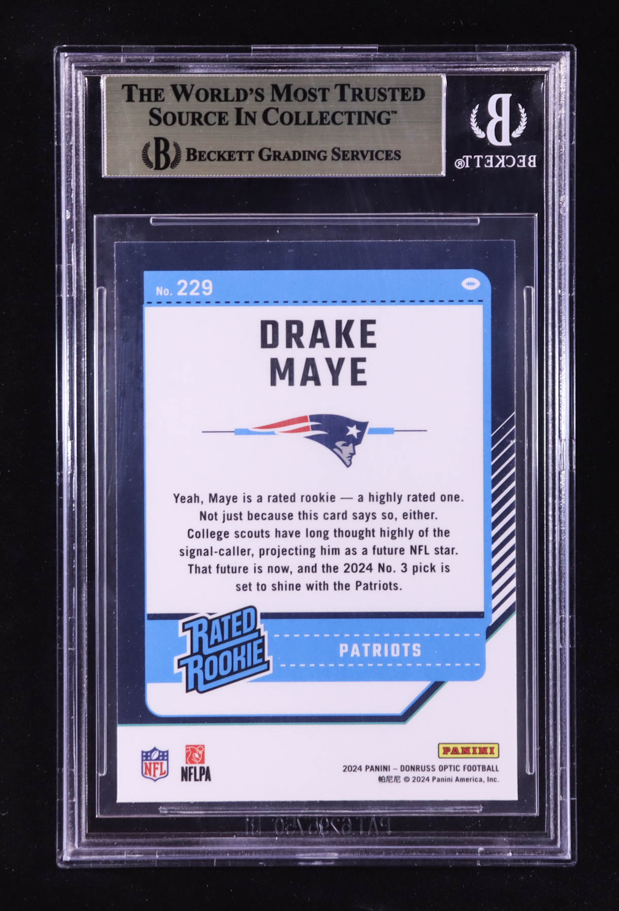 Drake Maye 2024 Donruss Optic #229 RR RC (BGS 9.5)