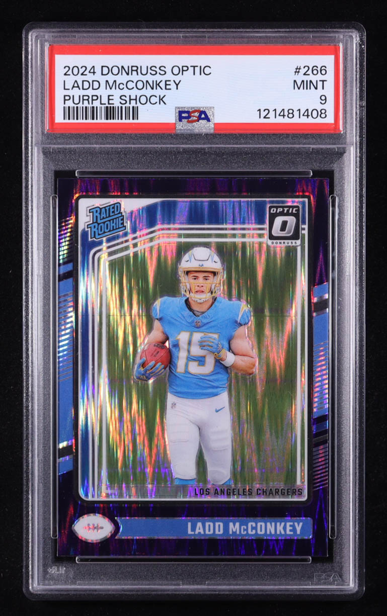 Ladd McConkey 2024 Donruss Optic Purple Shock #266 RR RC (PSA 9)