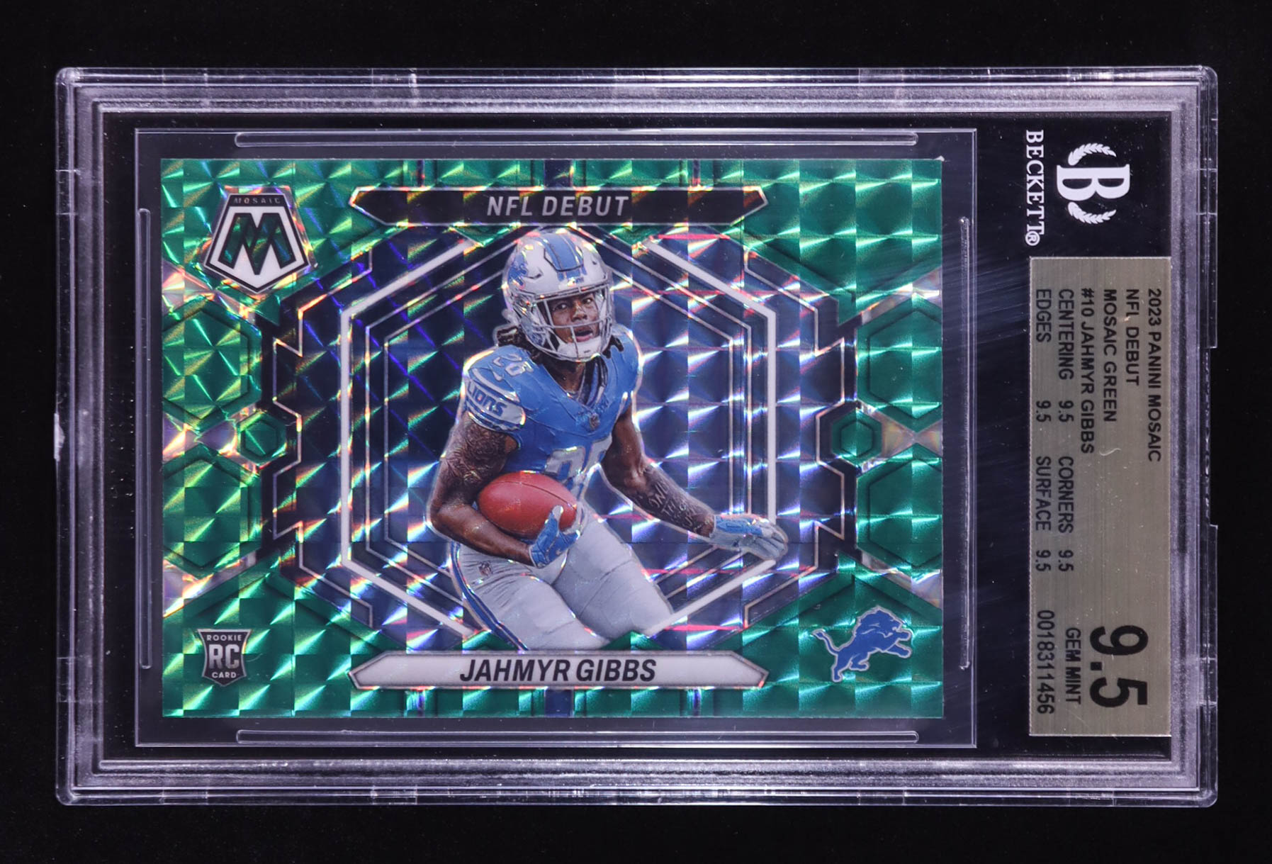 Jahmyr Gibbs 2023 Panini Mosaic NFL Debut Mosaic Green #10 RC (BGS 9.5)
