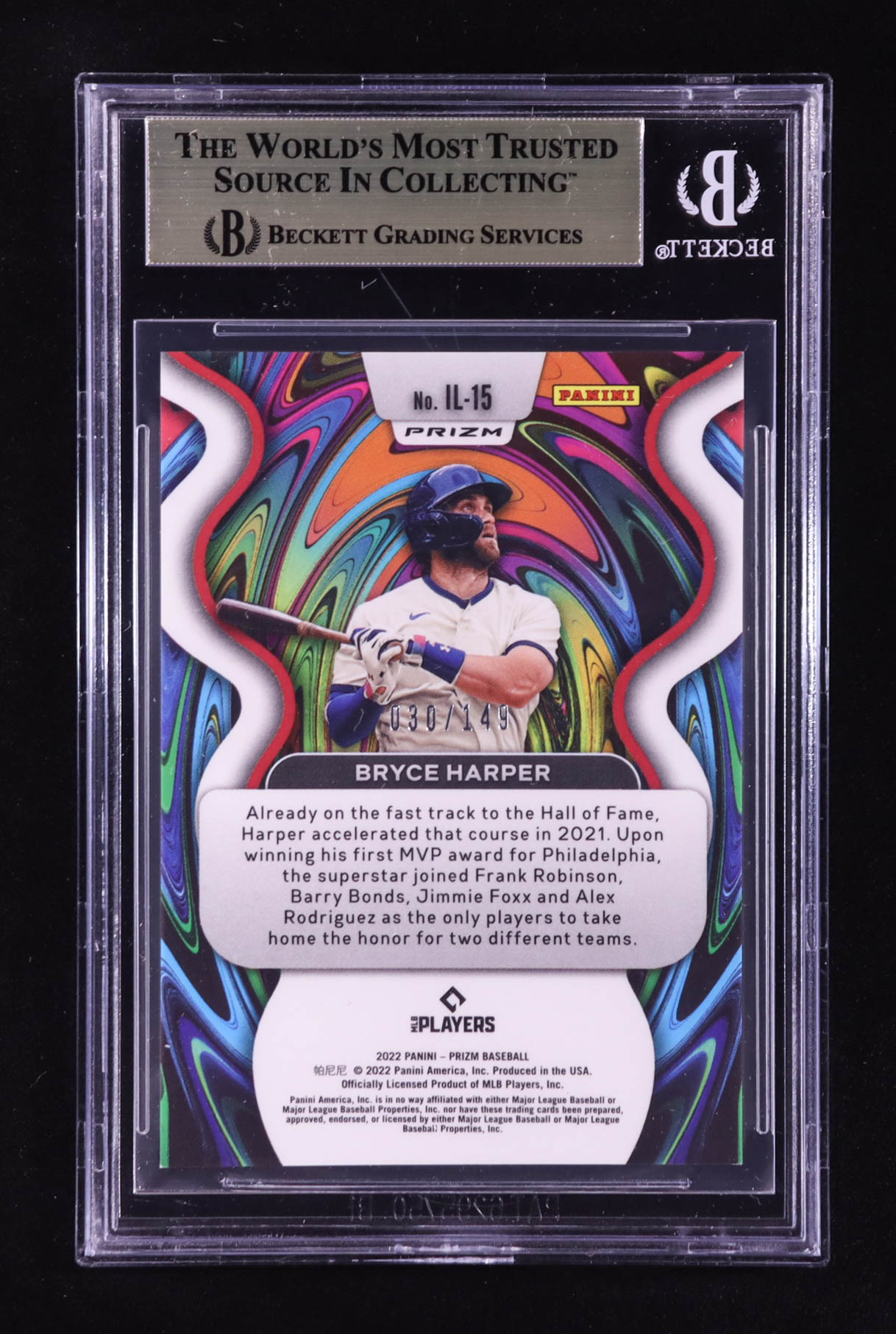 Bryce Harper 2022 Panini Prizm Illumination Prizms Red Mojo #15 #030/149 (BGS 9.5)
