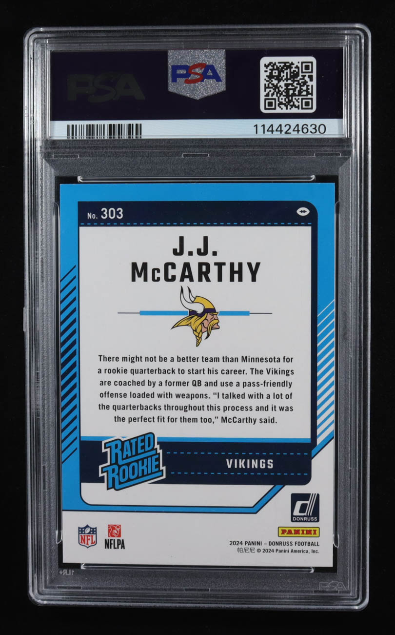 JJ McCarthy 2024 Donruss Press Proof Green RR #303 RC (PSA 9)
