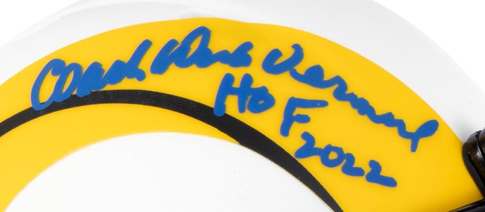 Riddell Los Angeles Rams lunar eclipse alternate speed mini helmet has been hand-signed and inscribed by Dick Vermeil (HOF).
