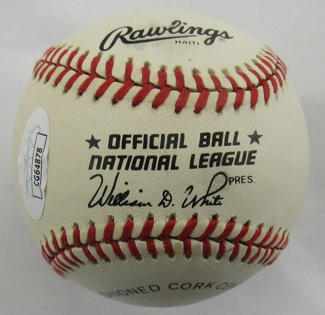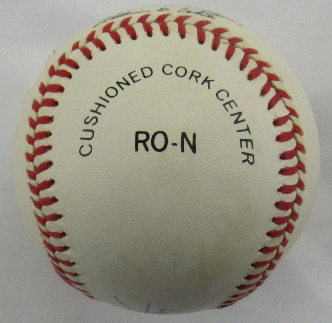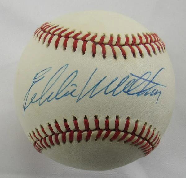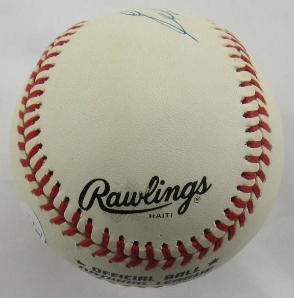 Rawlings Official National League Baseball. Hand-signed by Eddie Mathews (D. 2001, Atlanta Braves, HOF). Please note, the baseball is naturally toned.