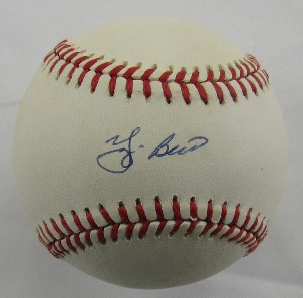 Rawlings Official American League baseball has been hand-signed by Yogi Berra (D. 2015, New York Yankees, HOF).