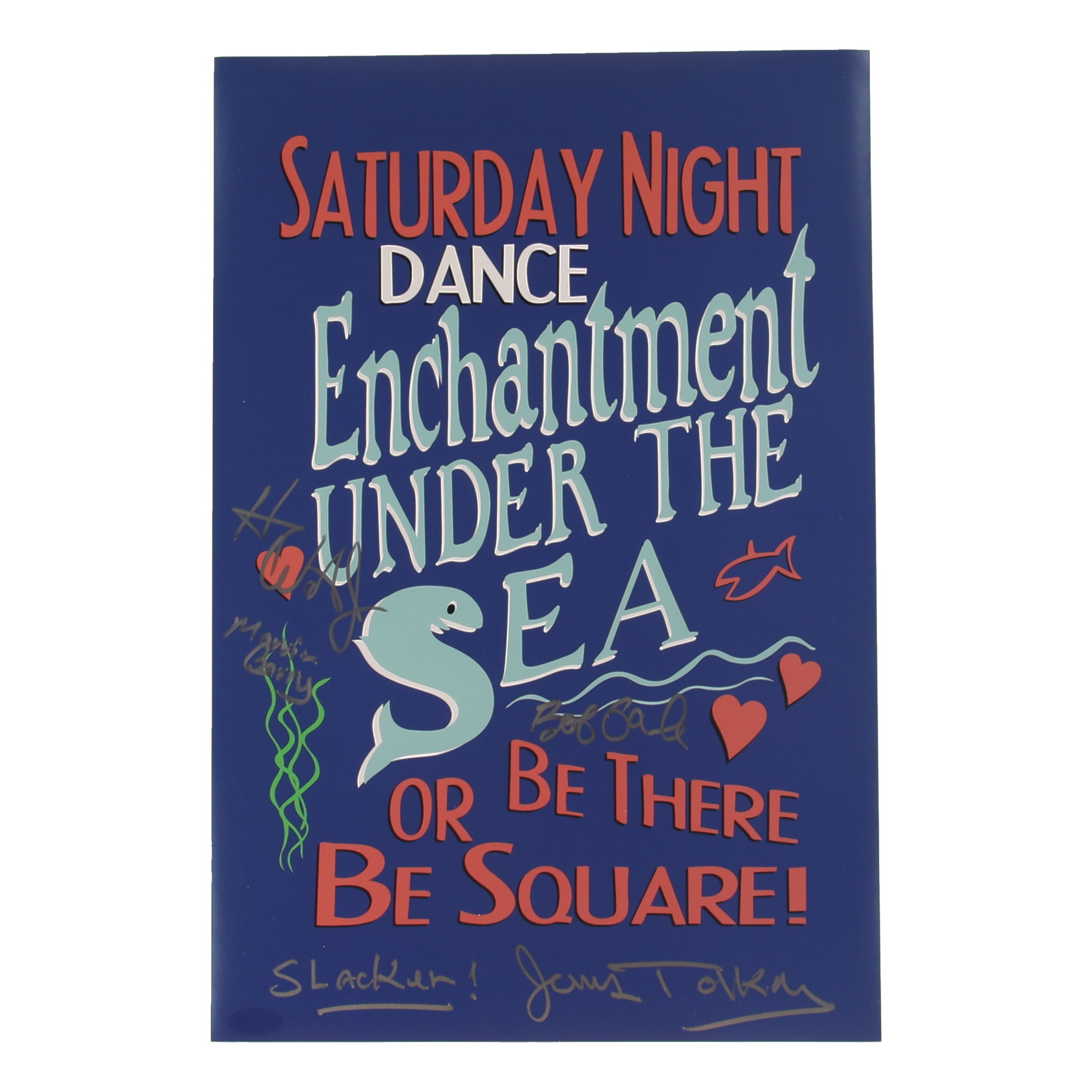 Poster measures 12" x 18" in size. Hand-signed and inscribed by Bob Gale, Harry Waters Jr., and James Tolkan.