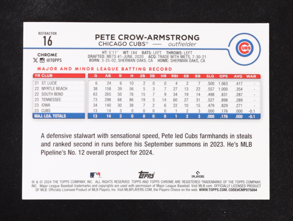 Pete Crow-Armstrong 2024 Topps Chrome Refractors #16 RC