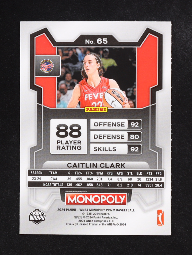 Caitlin Clark 2024 Panini Prizm Monopoly WNBA #65 RC