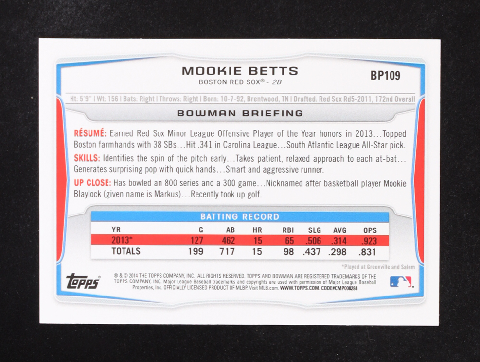 Mookie Betts 2014 Bowman Prospects #BP109 RC