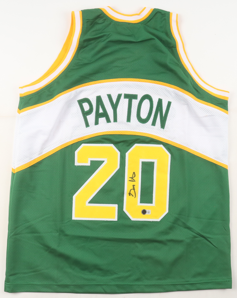 Custom jersey with everything sewn on, size XL. Hand-signed by Gary Payton (Seattle SuperSonics, HOF).