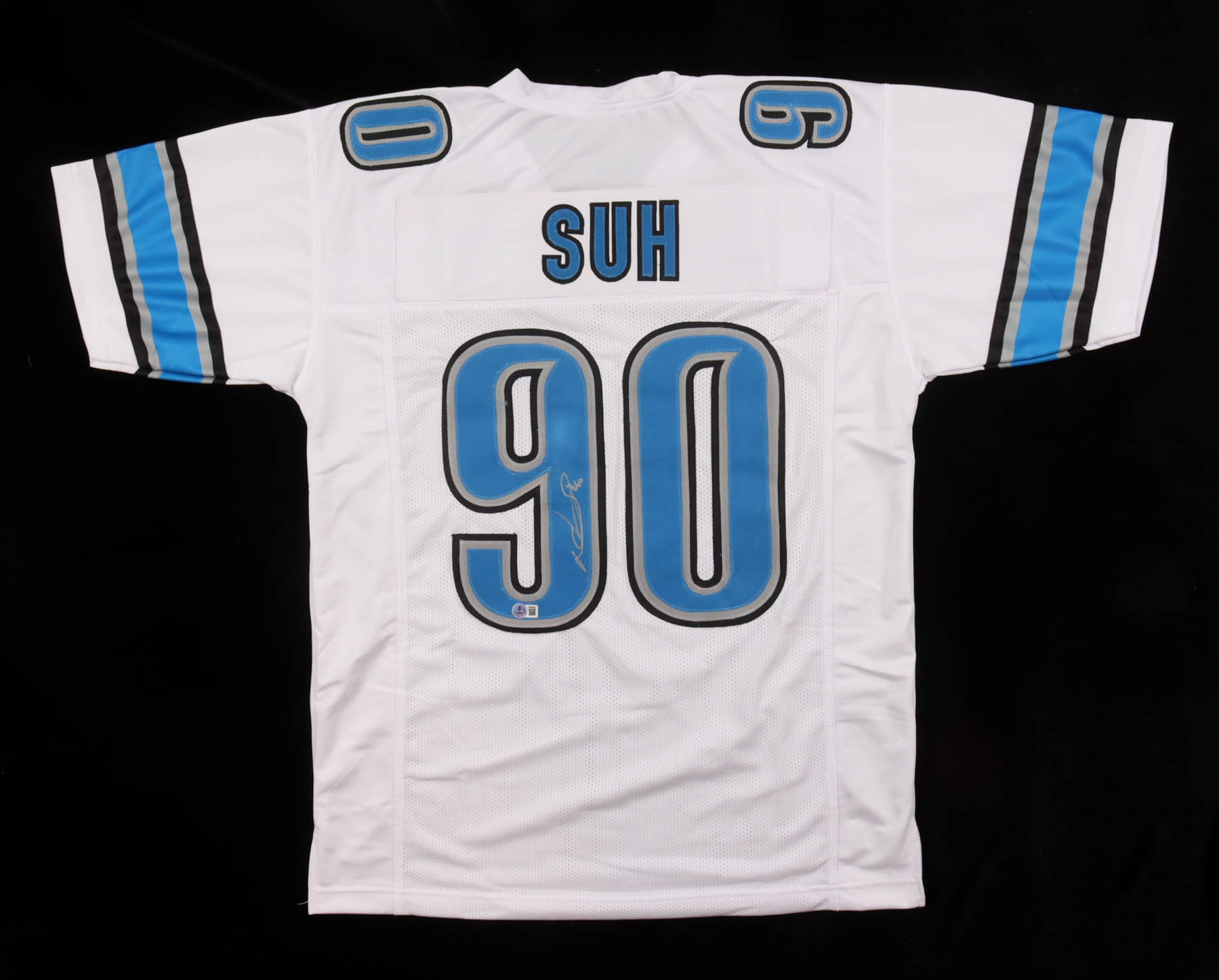 Custom jersey with everything sewn on, size XL. Hand-signed by Ndamukong Suh.