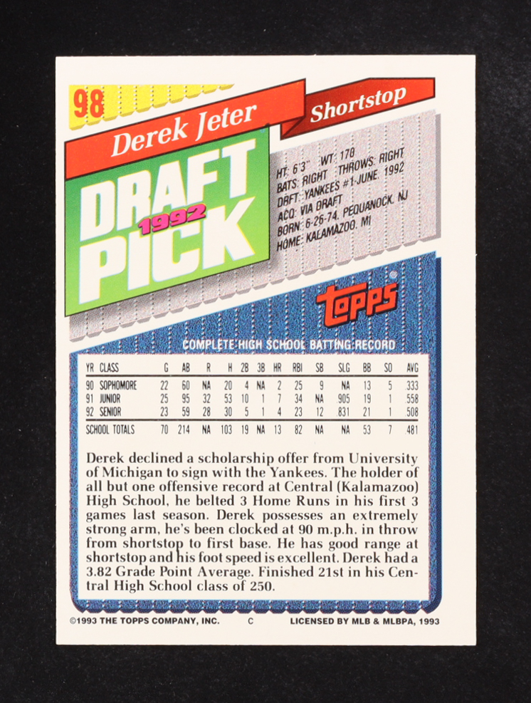 Derek Jeter 1993 Topps #98 RC