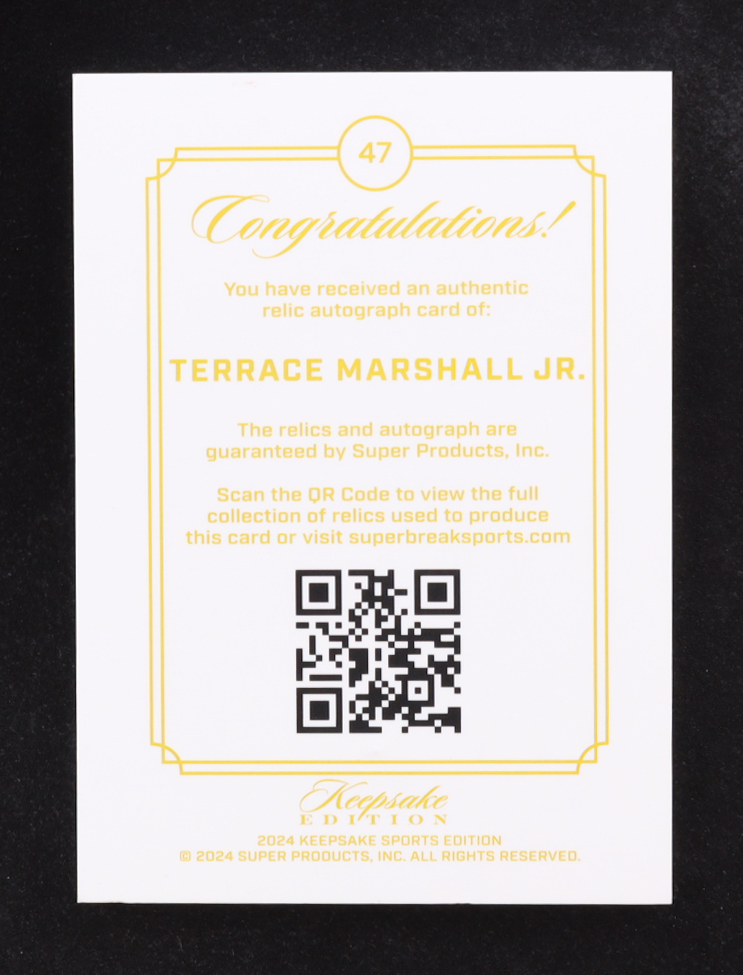 Terrace Marshall Jr. 2024 Keepsake Edition Gem Relic Autograph #47 #57/75 RC