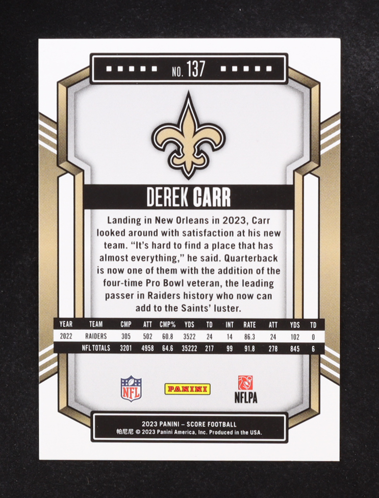 Please see photos for details regarding the condition of the card (New Orleans Saints).