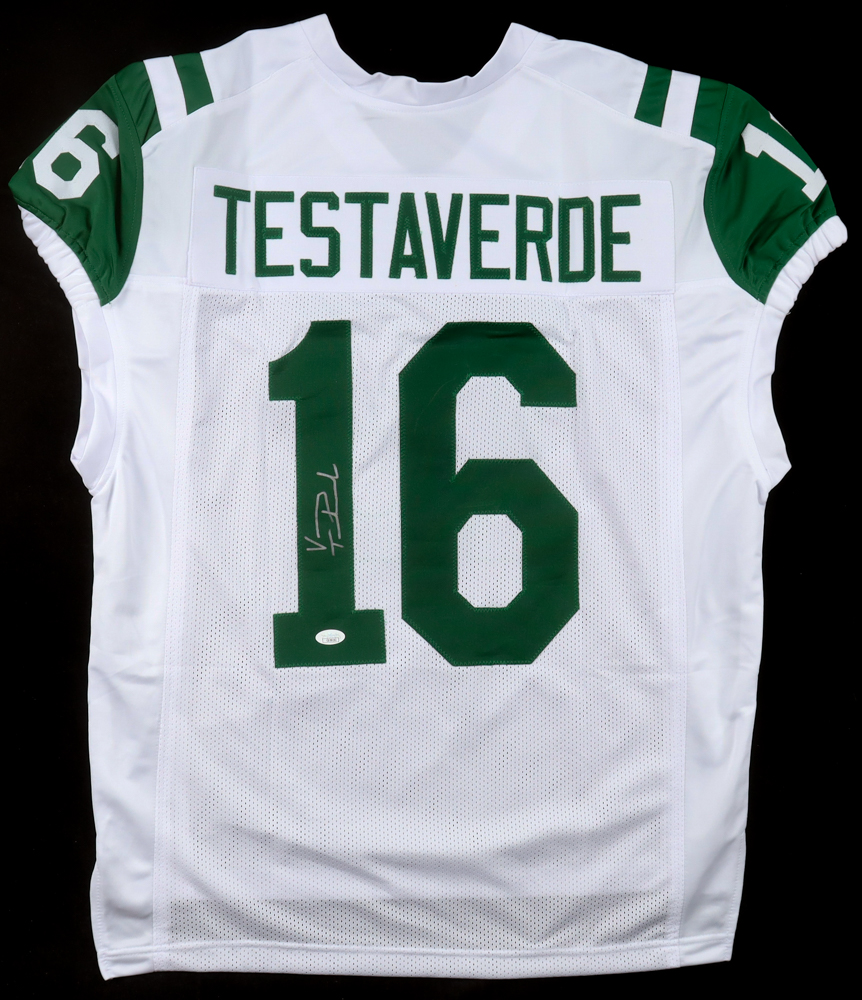 Custom jersey with everything sewn on, size XL. Hand-signed by Vinny Testaverde.