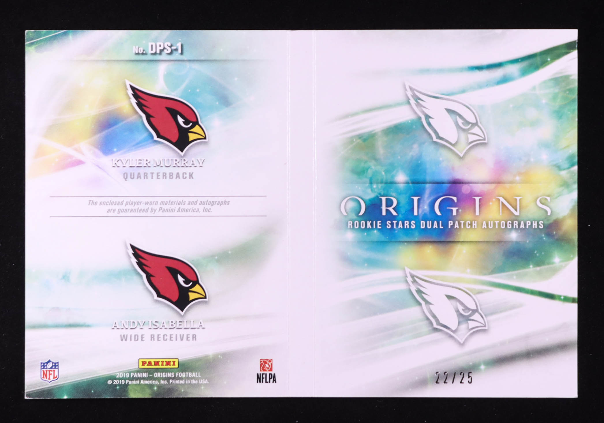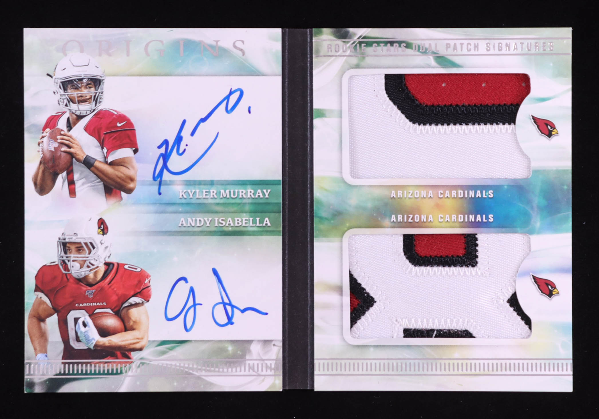 Kyler Murray / Andy Isabella 2019 Panini Origins Rookie Stars Dual Patch Signatures Booklet #1 RC #22/25