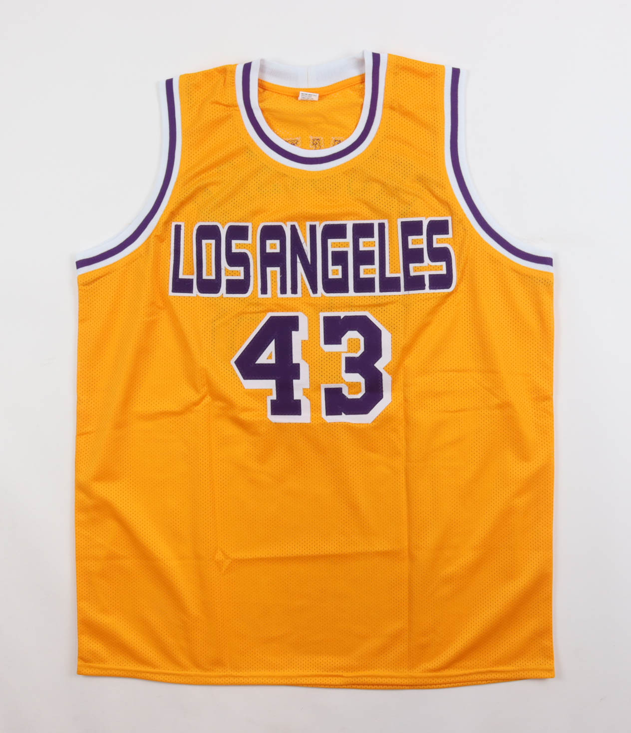 Custom jersey with everything sewn on, size XL. Hand-signed and inscribed by Mychal Thompson (Los Angeles Lakers).
