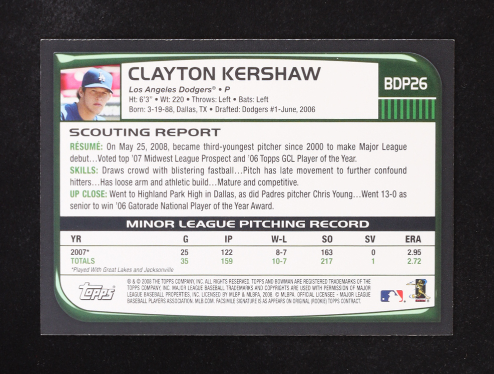 Clayton Kershaw 2008 Bowman Chrome Draft #BDP26a RC