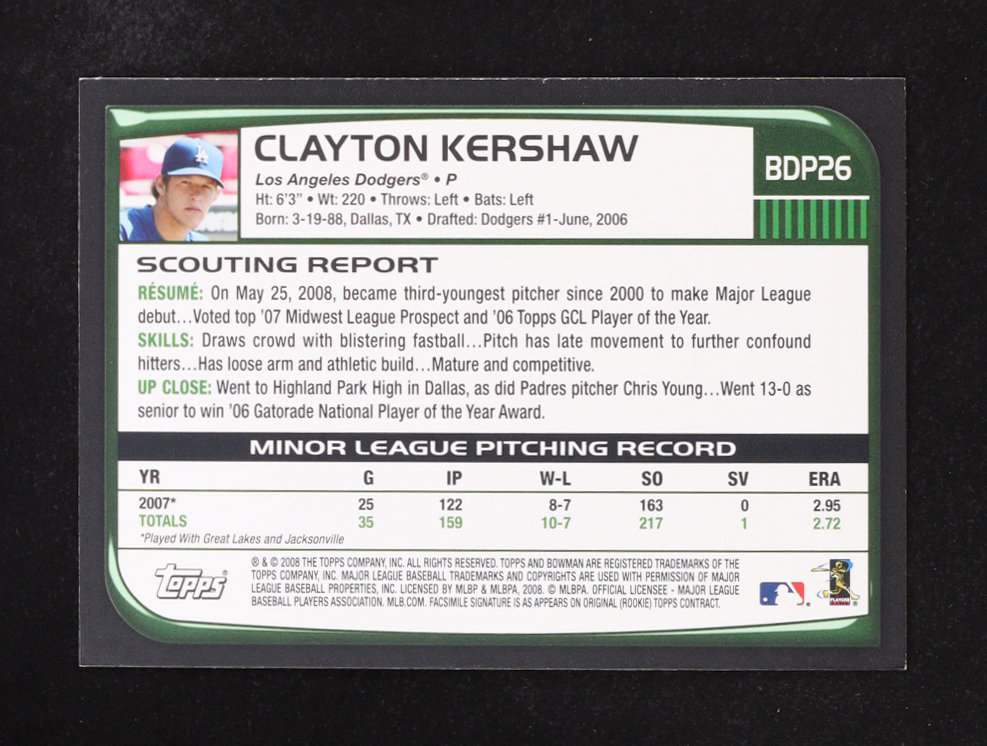 Clayton Kershaw 2008 Bowman Chrome Draft #BDP26a RC