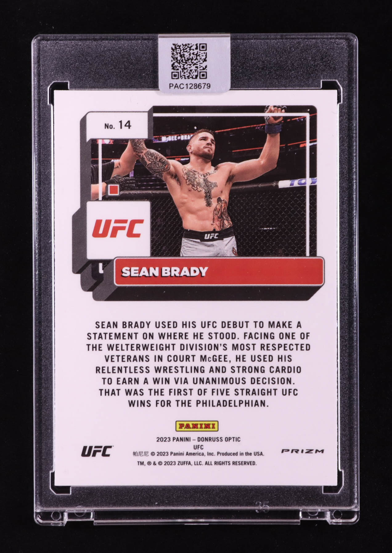 Sean Brady Signed 2023 Donruss Optic UFC Holo #14 (PA)