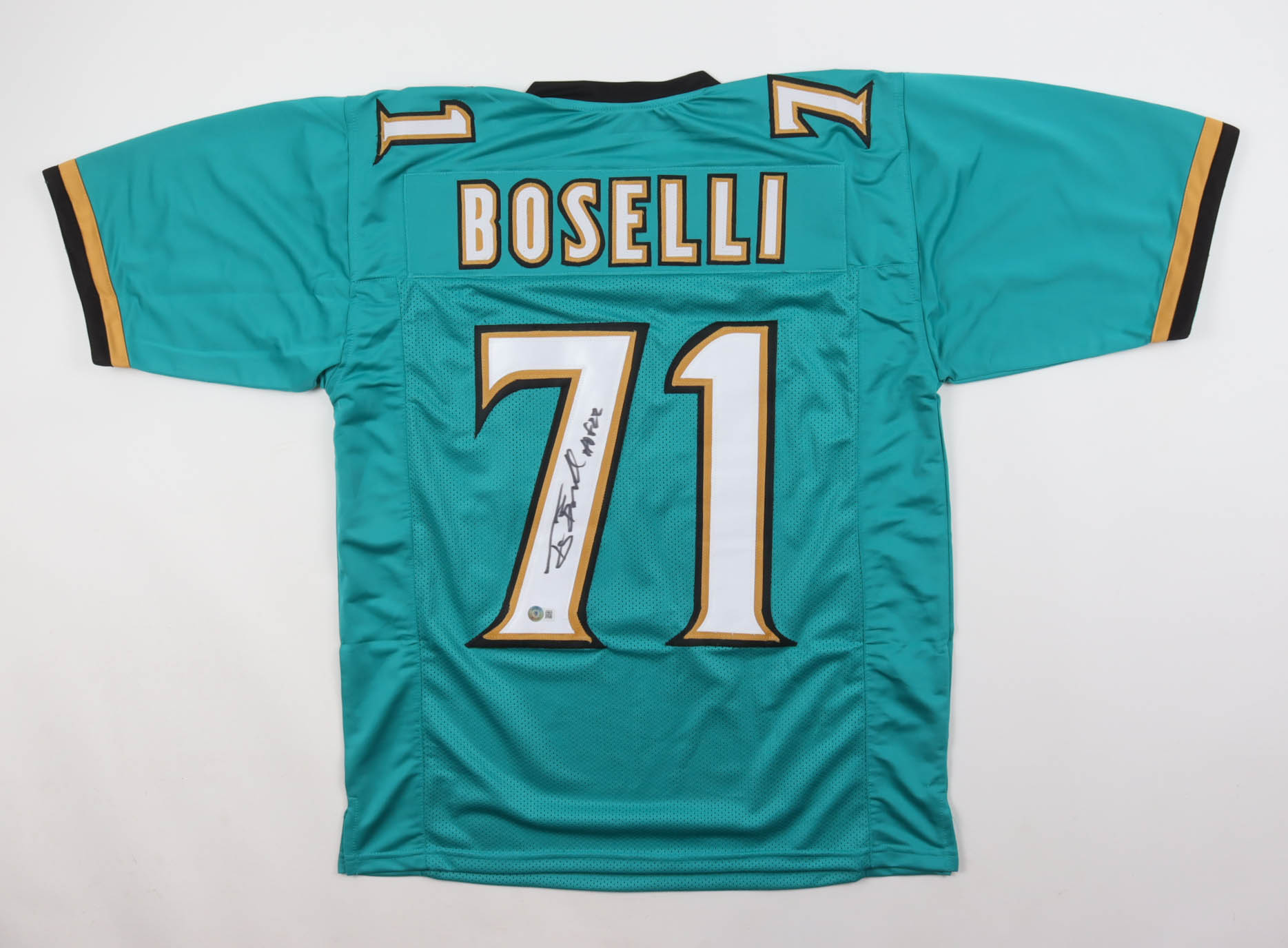 Custom jersey. Everything sewn on, size XL. Hand-signed and inscribed by Tony Boselli (HOF).