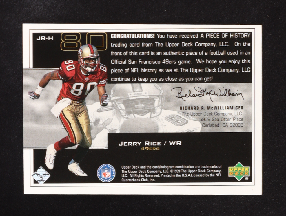 Jerry Rice 1999 Upper Deck Ovation A Piece of History #JRH