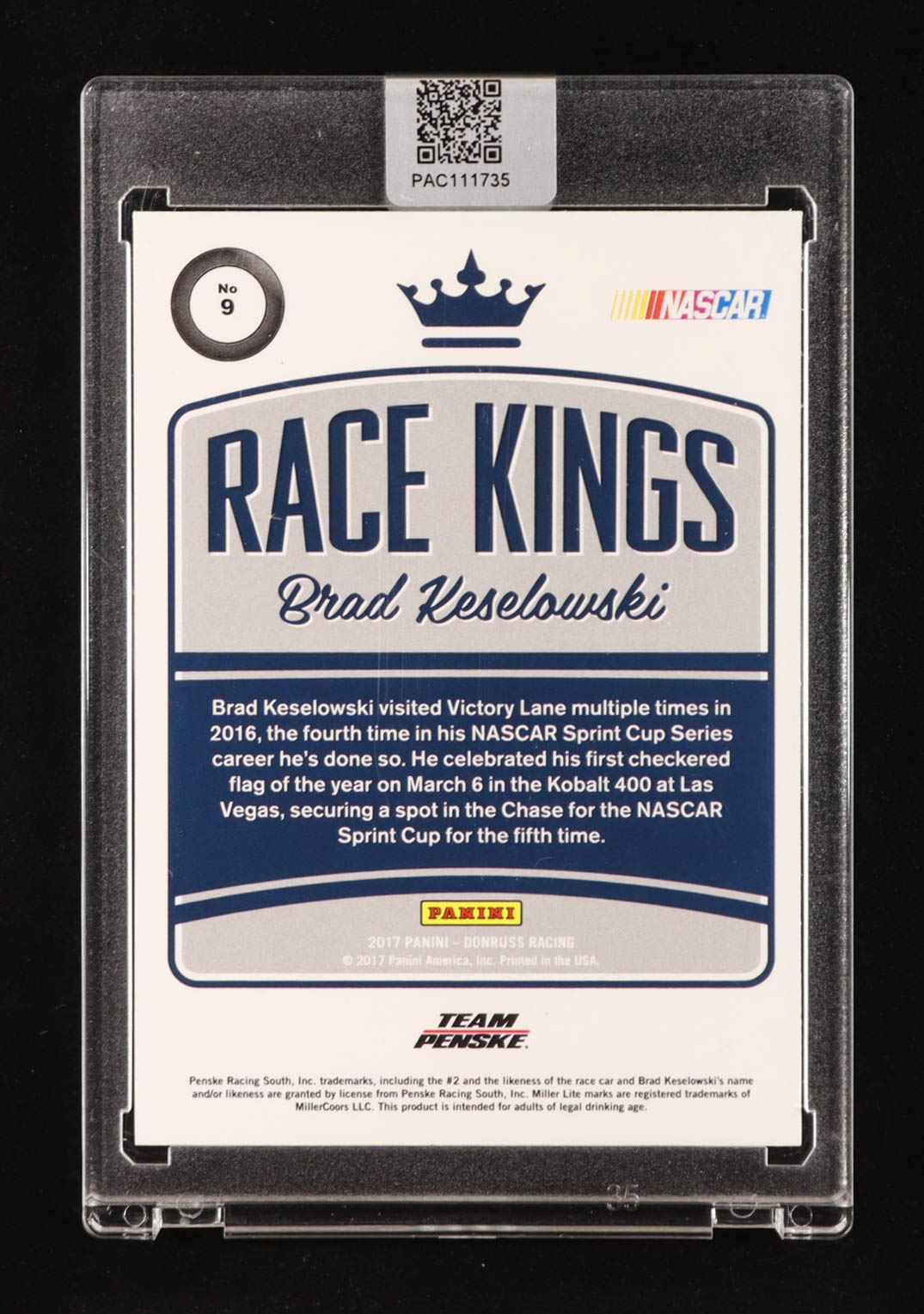 Brad Keselowski Signed 2017 Donruss Race Kings #9 (PA)