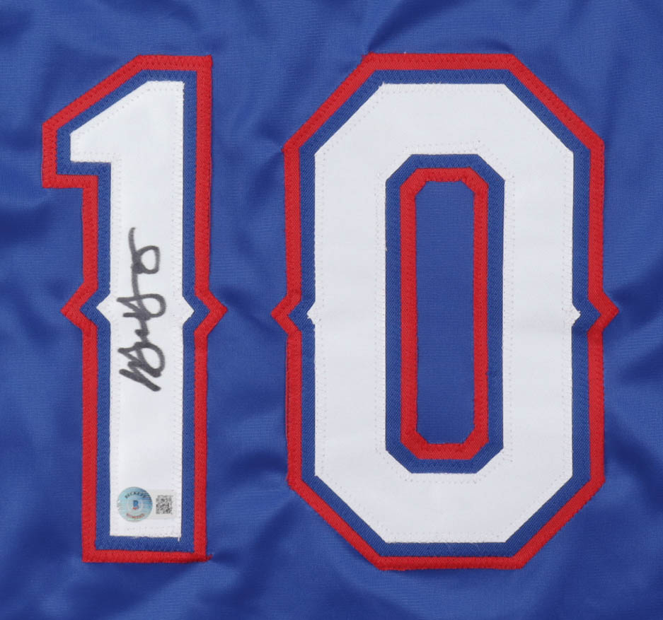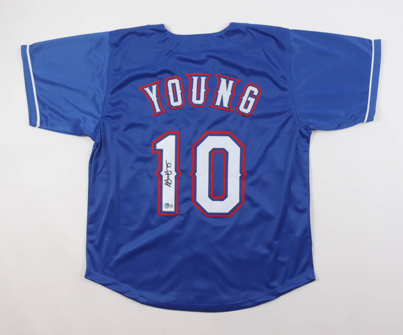 Custom jersey with everything sewn on, size XL. Hand-signed by Michael Young.