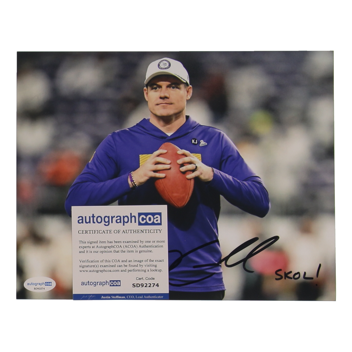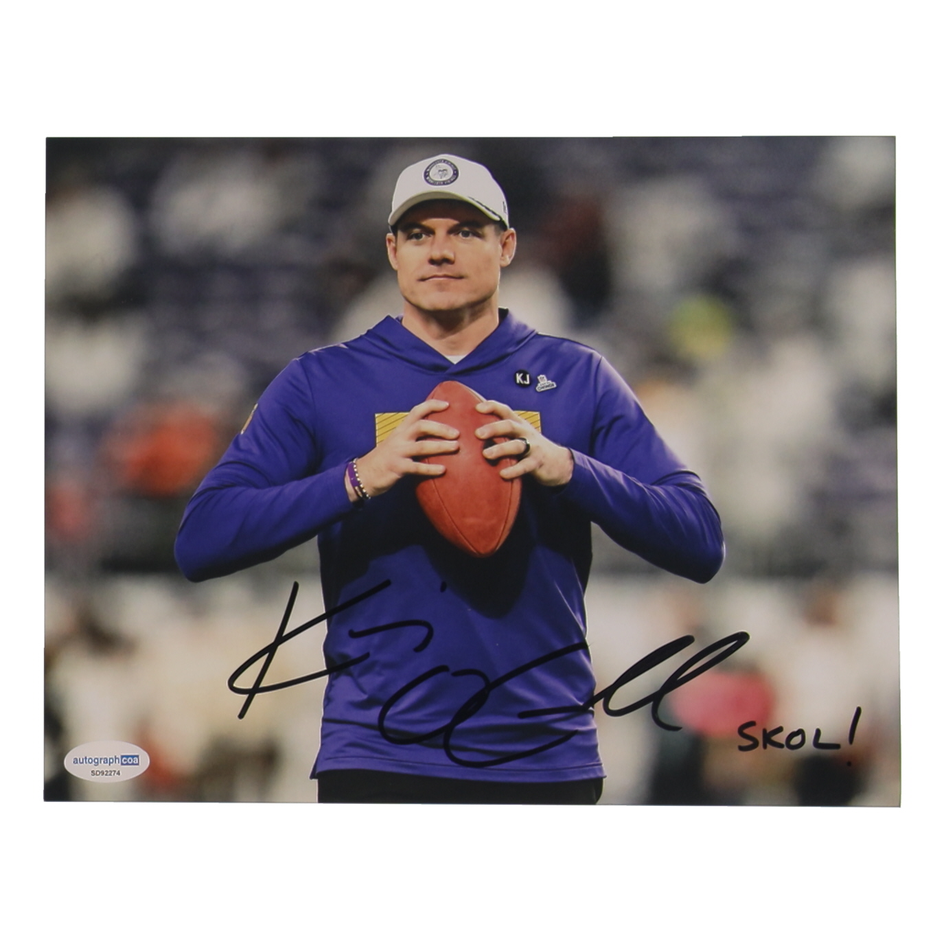 Photo measures 8" x 10" in size and has been hand-signed and inscribed by Kevin O'Connell (Minnesota Vikings).