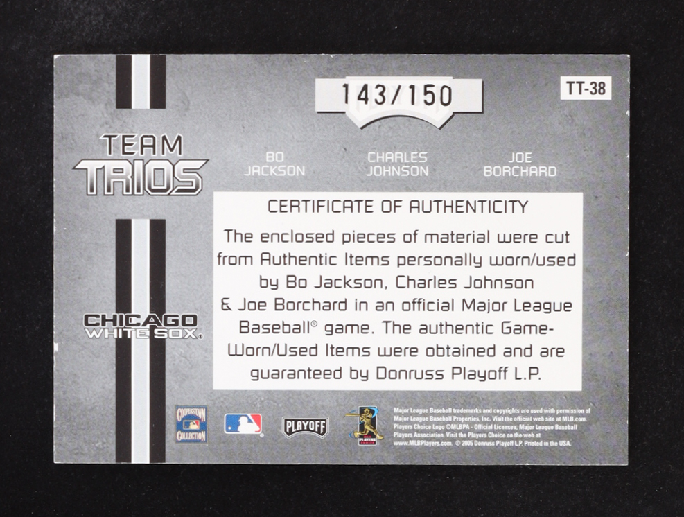 Bo Jackson / Charles Johnson / Joe Borchard 2005 Absolute Memorabilia Team Trios Swatch Single Bat #TT38 #143/150