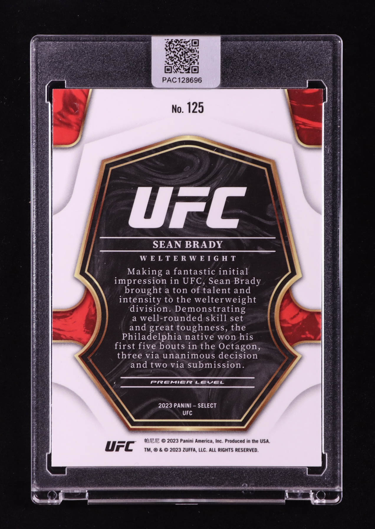 Sean Brady Signed 2023 Select UFC #125 (PA)