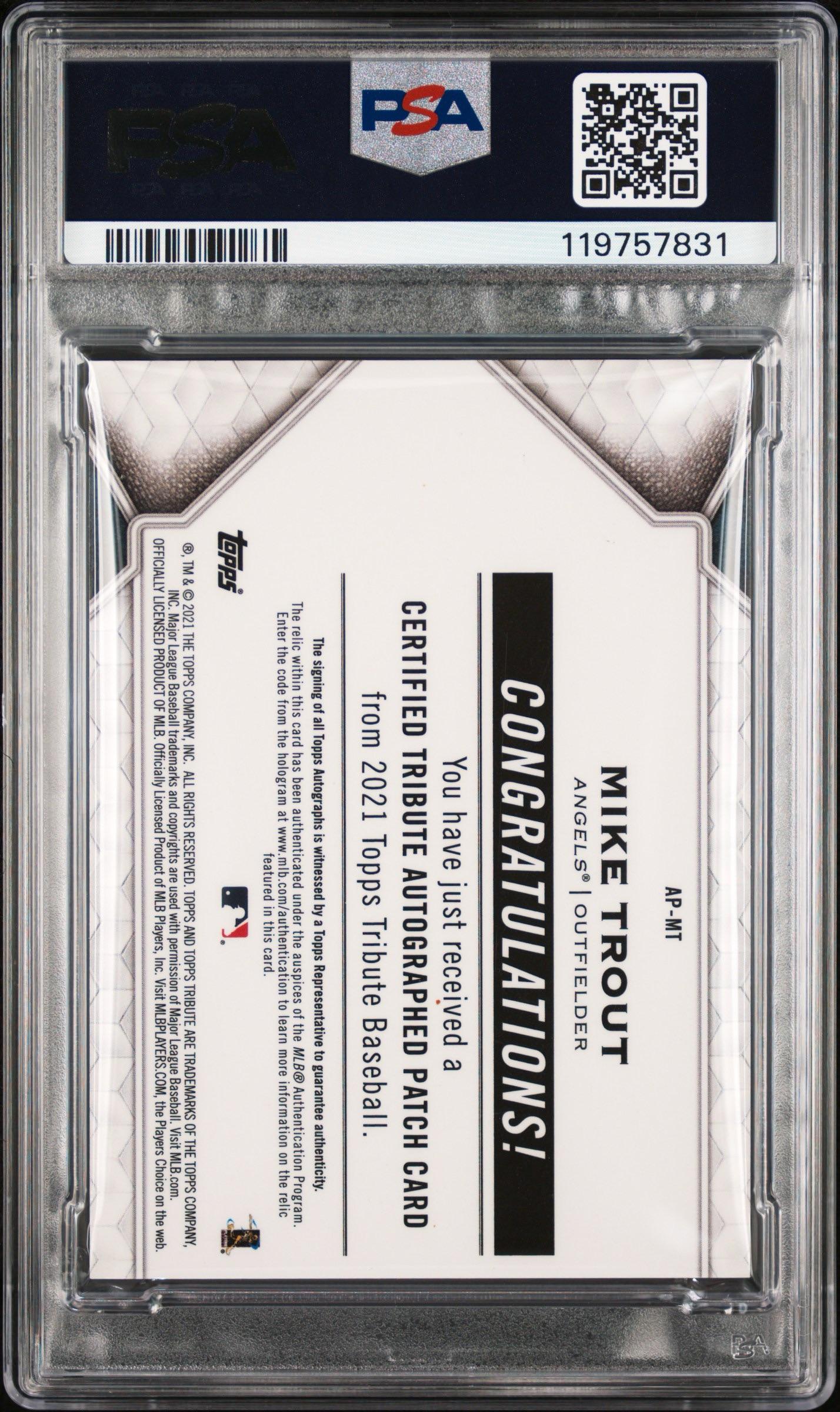 Mike Trout 2021 Topps Tribute Autograph Patches #APMT #/50 (PSA 8)